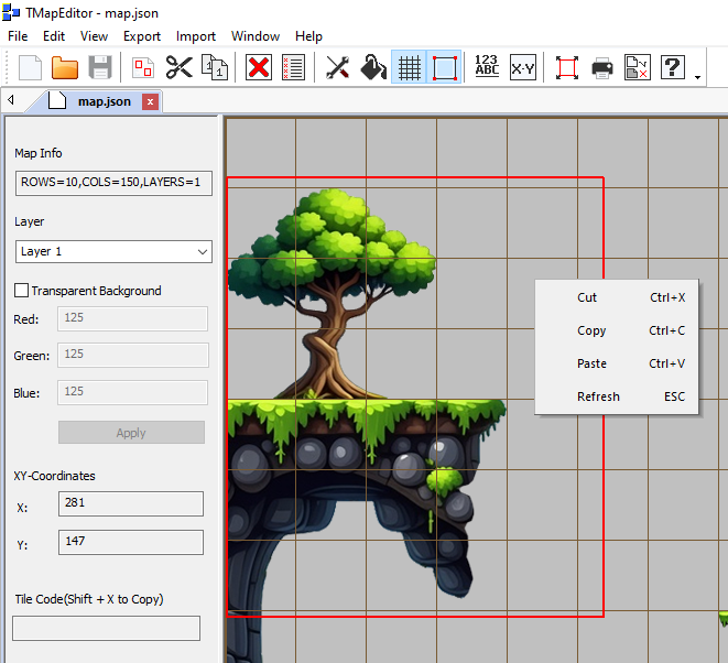 8. Chức năng copy, cut, paste vùng tileset, giúp bạn linh hoạt trong quá trình thiết kế