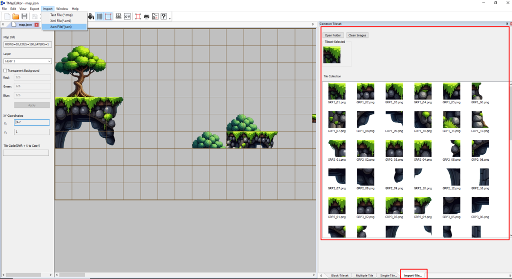 Xây dựng map game2d từ các hình ảnh tileset trong kho thư viện master data cơ bản.